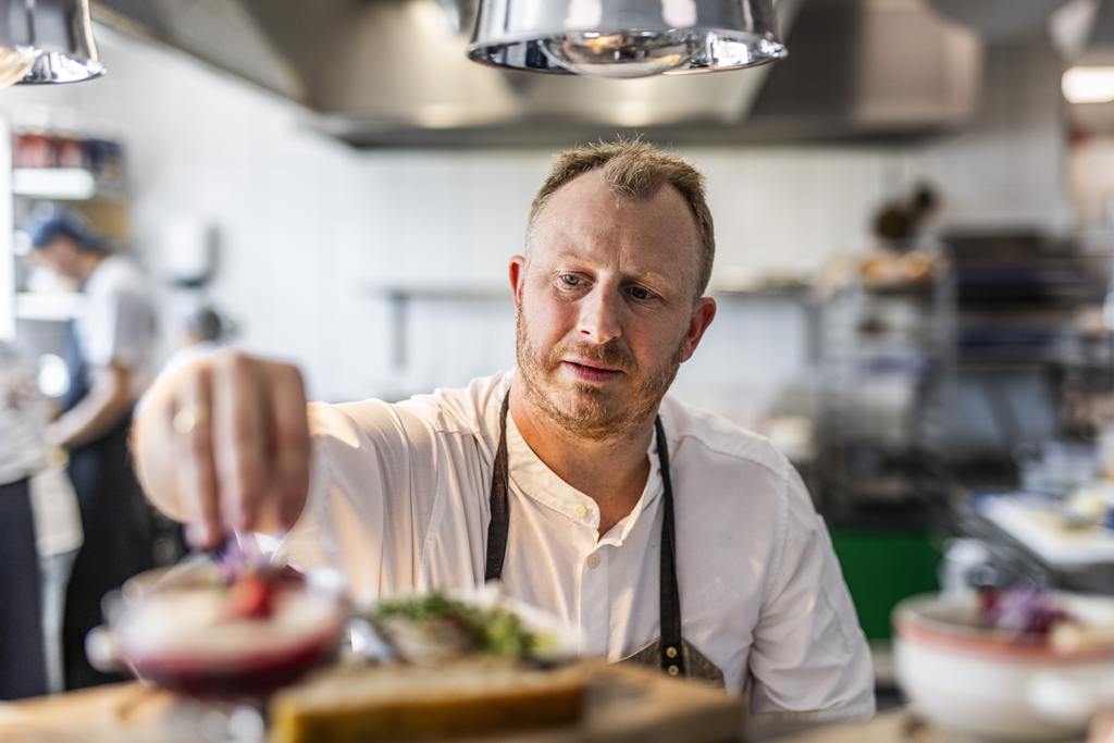Når man er beliggende ved Kattegat, spiller fisk naturligt en central rolle i vores køkken. Men vi glemmer bestemt ikke de klassiske retter lavet af gode råvarer fra slagtere og grøntsager fra Samsø.